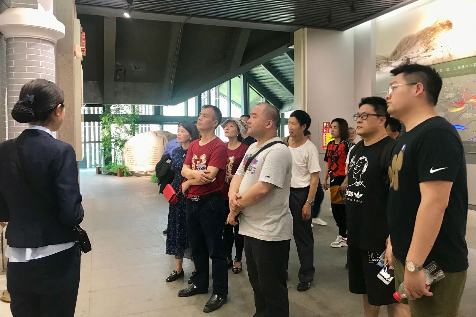 大家认真听讲解员讲解四渡赤水战役历程