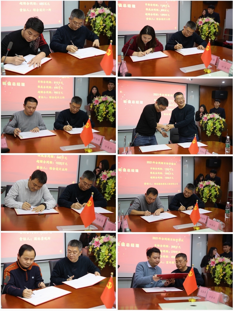 大会第三项议程——轮值总经理与公司直属生产部门签署2021年经营管理目标责任状。各位负责人纷纷表示:2021年,加大经营力度,使命必达!轮值总经理赵江华表示:2021年,市场环境虽有机会,但仍属“逆境”,我们应该强化公司资源优势,目标分解,管理部门全民营销,统一思想,做好计划,用“计划目标达成”考核作为主要管理手段。2021年将以“一切围绕经营与生产”,以完成公司经营目标为目的,开展经营工作,树立起大象设计这一形象品牌,让大家以作为大象人而自豪。为确保公司目标达成,激发全员工作热情。