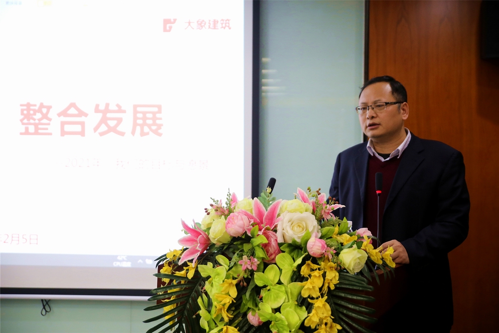 会议的最后,公司董事长以“强基固本、整合发展”为主要纲领,明确公司未来发展方向。2021年,建设部关于资质改革的方向已明确,在建筑行业缩减65%的资质,走向“征信”和“业绩”发展的时代,大象建筑始终以“设计”为根基,重点提升公司“方案设计”和“施工图设计”的水平,打造具有行业竞争力和创新力的方案团队和施工图团队。2021年,公司将加快整合招标代理、工程造价、工程监理公司资质,向全过程工程咨询转型。